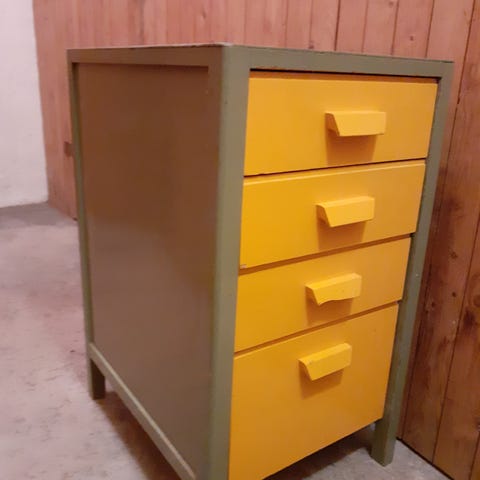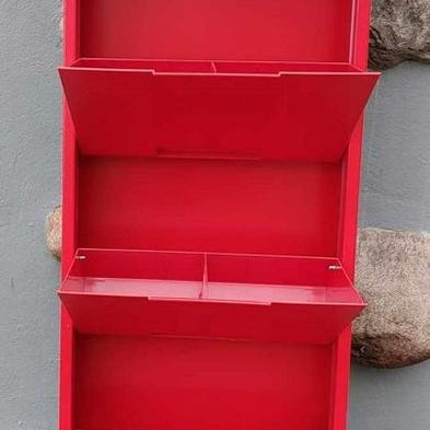 Häftigt skoställ i fin rödlackerad metall. Bra vintage bruksskick enligt bilder, något litet färgskrap annars fin. Kan lätt tas isär. Väldigt praktiskt!
