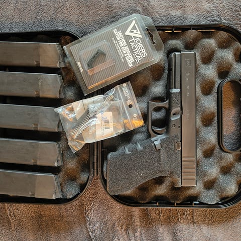 Cz P10c tidig variant med dubbelsidig magrelease.