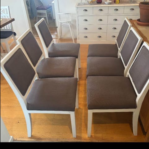 Hejjag säljer 6 stycken matstolar utan överdrag, har små fläckar men ser perfekt ut med överdrag.