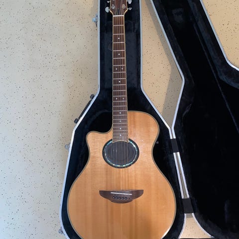 Säljer nu denna rätt unika Yamaha. APX500 serien vilket innebär nättare kropp och hals, för de som föredrar elgitarrkänsla. Inbyggd Yamaha preamp med eq samt stämapparat. Drivs av 9v batteri. Otroligt skön att spela på samt håller stämning väldigt bra. Preampen har fått väldigt lite användning så den är fullt fungerande. I övrigt är gitarren sliten, men inga större skavanker som påverkar upplevelsen.