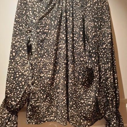 Mörkblå blus med trekvartsärm från Åhléns. Har band i sidan som knyts efter tycke beroende på vilken siluett man vill uppnå. Endast testad, aldrig använd. Säljes pga felköp.