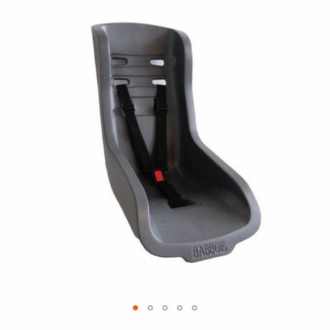 Babboe Original babysäte till lastcykel i grå gummi med inbyggd sele. Flera hål för remmar gör att det går att justera hur det sitter i lådan. Komplett med instruktioner