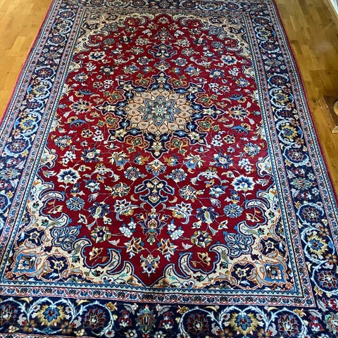 Stor och stilren IKEA VEDBÄK matta i klassisk orientalisk design med fina färger i rött, blått och beige. Passar perfekt i vardagsrum, matsal eller större sovrum.