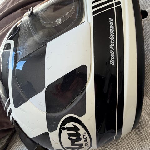Arai CK-6 karting/racinghjälm för barn i storlek S (54–56 cm), vit med klart visir. Har flera ventilationsöppningar och justerbart visir med låsning på sidan.