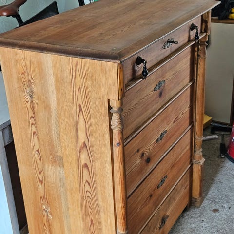 Antik byrå i trä från 1700-talet med fem lådor