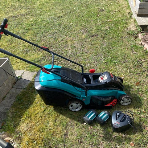 Eldriven gräsklippare i gott skick med uppsamlings korg. Elkabel ingår ej.