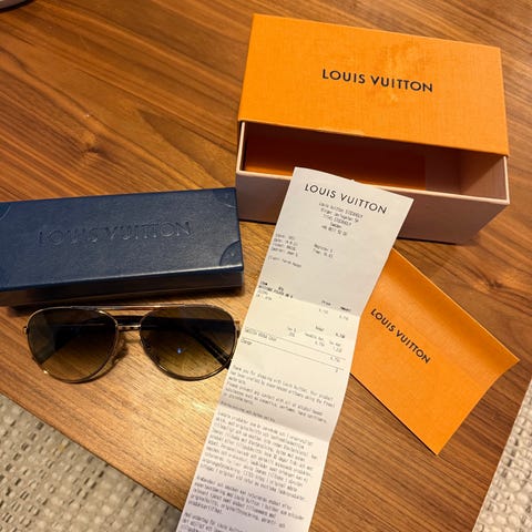 Allt på bilden medföljer. Hårt fodral, mjuk fodral, rengöringsduk samt intyg från Gucci.