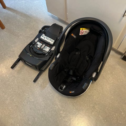 BeSafe babyskydd för 0–13 kg i turkos färg med svart bas. Har bärhandtag, justerbart solskydd och 5-punktssele med extra kuddar för huvudet.