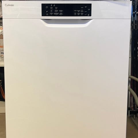 Vit underbyggd diskmaskin från Electrolux med digital panel och flera programknappar på fronten. Invändigt finns två korgar, bestickkorg och justerbara fack för tallrikar och glas.