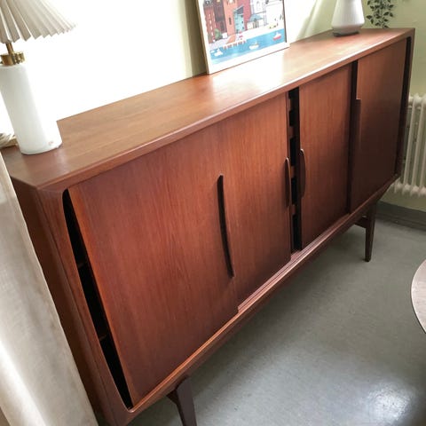 Vackert skåp med rötter i 1930–40-talets Swedish Modern. Varsamt renoverat och målat i kulören Modern Beige från Jotun, en mjuk och tidlös ton som passar i många hem.