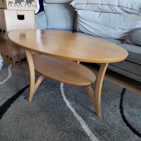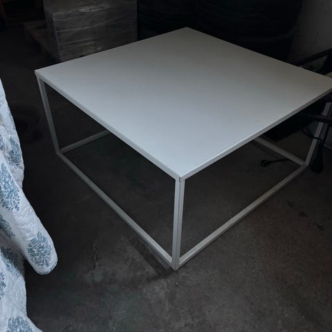 Svart soffbord i okej skick. Stabil konstruktion med praktisk hylla undertill för förvaring. Passar perfekt i vardagsrummet.