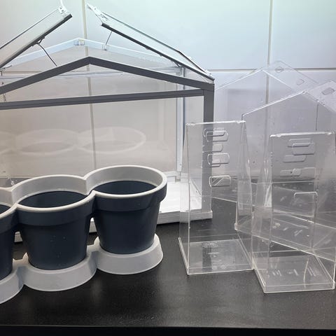 Fyra agave växter i olika storlek säljes i krukor och en Aloe-vera. Fina som gröna inslag både inne och ute, står nu i vanliga blomkrukor med jord.