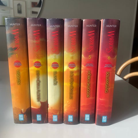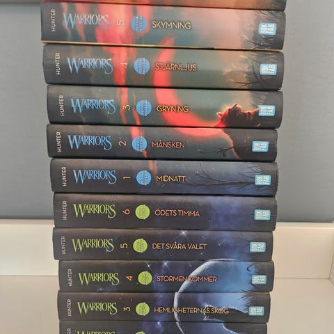 Warriors. Första profetian: Del 3- Hemligheternas skog, Del 4- Stormen kommer, Del 5- Det svåra valet, Del 6- Ödets timma.