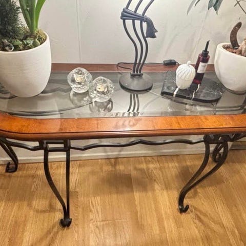 Rektangulärt soffbord i ekträ med glasskiva