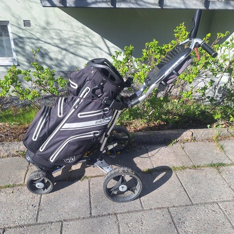 Bagen är väldigt praktisk och snygg och är i det närmaste oanvänd. Det är svärsonen som köpte ny bag men efter tre rundor visade det sig att han hellre bär. Nypriset var 2500 kr – kvittot finns.