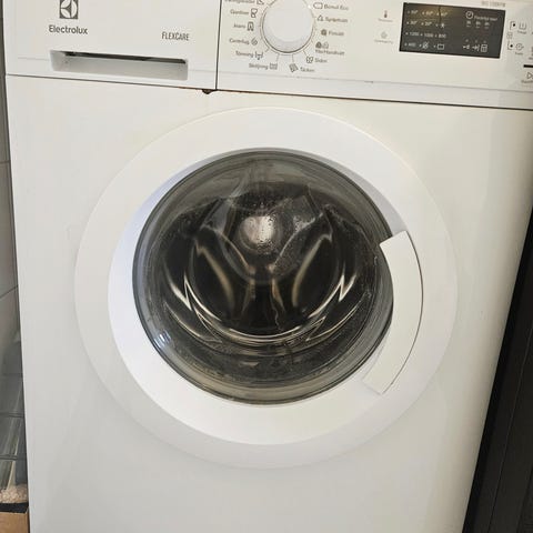 Electrolux PerfectCare 600 frontmatad tvättmaskin, 1–6 kg kapacitet. Har tydlig display, programvred och stor glaslucka framtill.