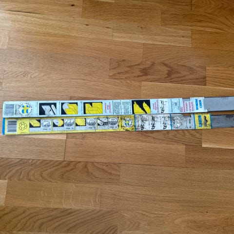BILD 6: Bågfilsblad från Kron och Sandvik. Bladen är 12” (300 mm) långa och har 18 tänder per tum (TPI). Tillverkade i Sverige av molybdenstål för hög hastighet.