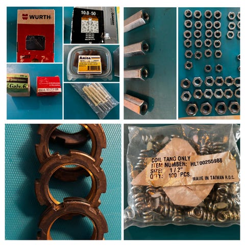 En mix av tillbehör, beslag och reservdelar till dörrar, skåp och fönster. En del nyproducerat, mycket äldre, en del vintage.