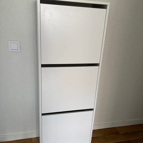 Säljer ett vitt skoskåp av modellen BISSA från IKEA med 3 fack