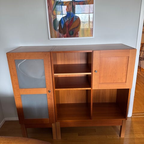 Superfint större vitrinskåp med snedställda ben