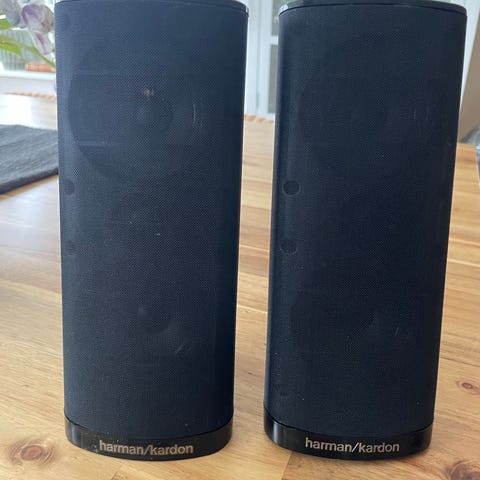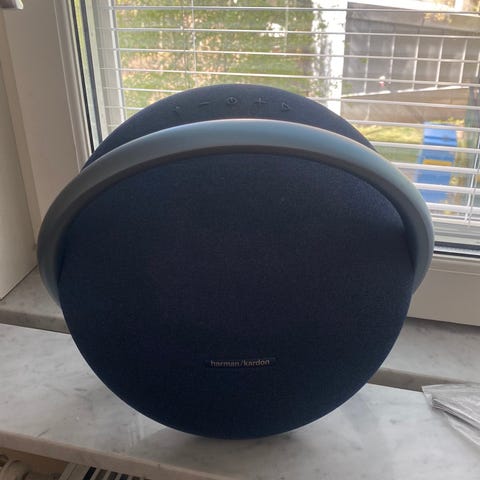 Harman Kardon rund trådlös högtalare i svart med inbyggt bärhandtag och små ben. Snygg som står på bord eller hylla och ger bra ljud hemma. Jätte bra skick, inte mycket använd för haft den i garderoben.