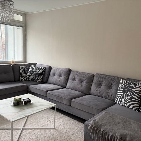 Ett brännmärke av plattång på ena hörnet av soffan ej störande eller hål. Använd ett år säljs pga flytt, måste hämtas den 30e april vid 11 tiden. Skickar bilder vid förfrågan! Pris kan diskuteras