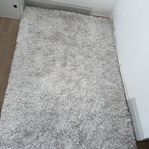 Ryamatta från Jotex. Tjock och mjuk lugg som gör den skön att gå på. Dock väldigt använd som ni ser och behöver kärlek. Köpte själv för cirka 3,5 år sedan för 2800kr. Den är 200x300 cm.