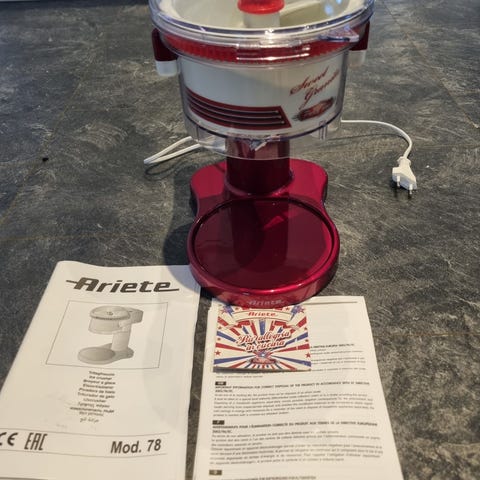 Maskinen är i bra skick och fungerar som den ska. Den har en snygg retrodesign som verkligen sticker ut i köket.
