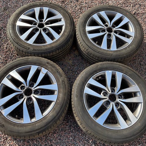 Selling my complete summer tires kit bevause they where the wrong type for my car. New conditions both the rims and the tire, as you can see in the photos, calla for any info.