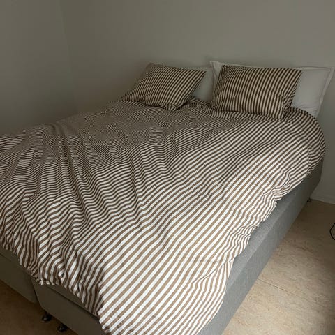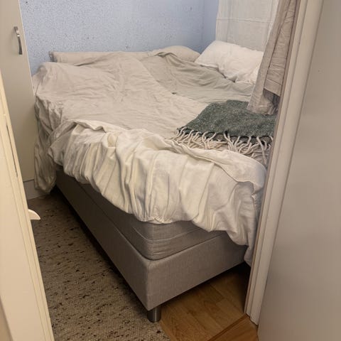Sängen inköpt ca 2017. Gaveln är fin. Sängen något sliten i madrassen.