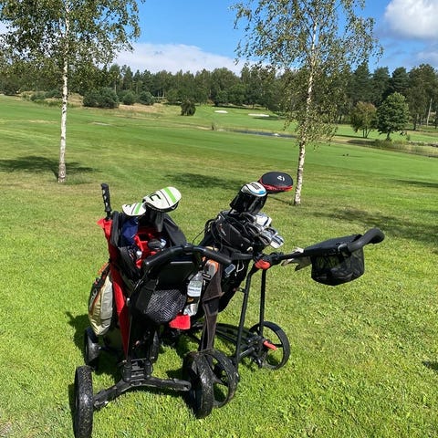 Blå Callaway 500kr. Lila/vit Cobra 600kr. Båda vagnbag o fullfack. Vagnarna säljes inte.