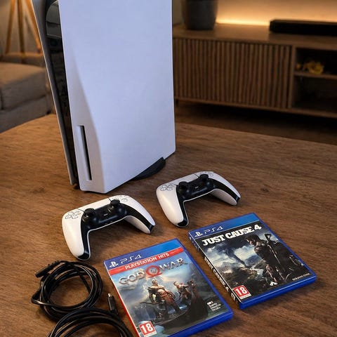Säljer ett PS5 med 2 hand kontroller, Laddnings ställ till 2 kontroller + 8 spel.