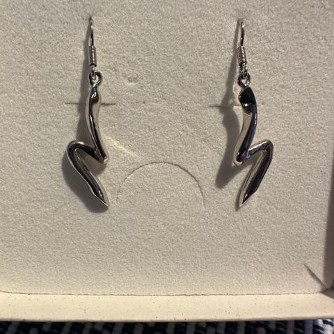 Stora silvriga örhängen med en sten i mitten. Väldigt lätta! Aldrig använda.