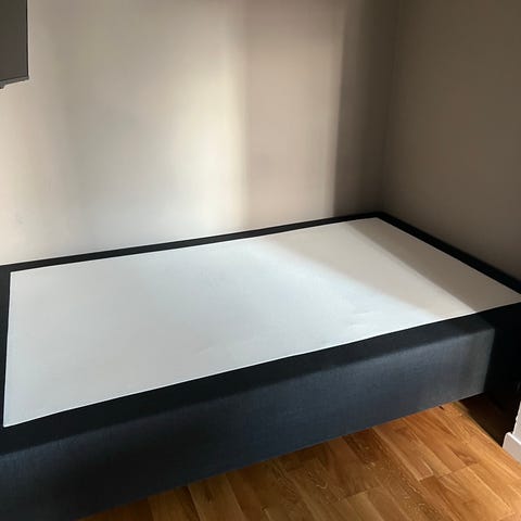 Den supermjuka sängen är 120*200 cms och en separat sidosäng är 120*18,5 cms. Båda har köpts in i lösvikt av ett hotell och sedan sålts vidare på grund av extra lagerstatus.