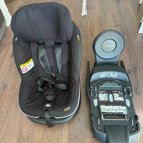 BeSafe bilbarnstol i svart utförande. Modellen är Izi Modular Rf i-size med tillhörande isofix-basplatta. Spegel medföljer. Självklart okrockad och allt fungerar. Bra använt skick.