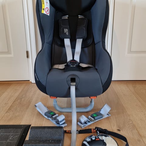 BeSafe bilbarnstol i svart med fempunktsbälte. Medföljer isofix-basplatta och spegel för att kunna se barnet bakåtvänt. Självklart okrockad och allt fungerar. Bra använt skick.
