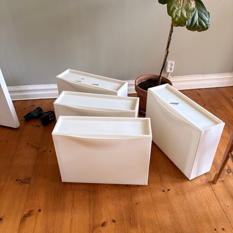 Selling a new shoe rack. Unused as we decided to go with another size. Made in Denmark. White color. Dimensions B:70.3 cm H:123.6 cm D:24.05 cm. Pick-up in Vasastan.