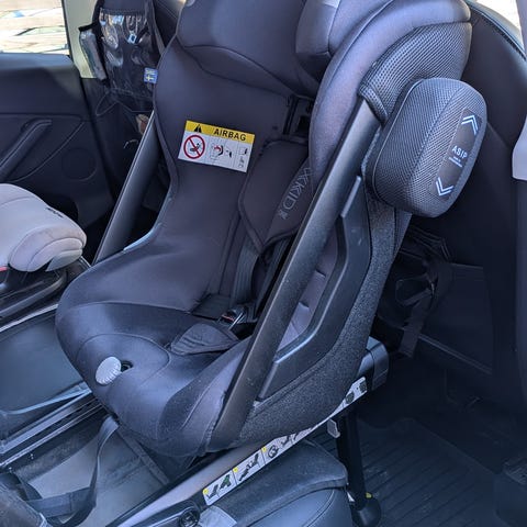 Blå bälteskudde från Maxi-Cosi i stl 36. Enkel att flytta mellan bilens säten och används med bilens egna bälte.