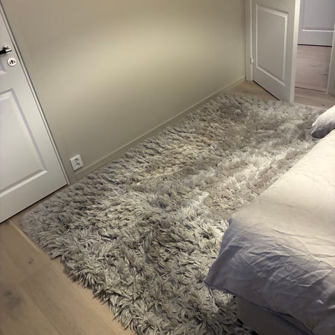 Ljus beige ryamatta från Rusta, tecken på användning men man kan nog borsta upp den på de ställen som den är lite nergången. 200x300 meter