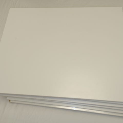 Två gavlar, tre hyllplan och två skohyllor till utgångna grundare 36cm-varianten av hyllan ELVARLI från IKEA. Smärre repor på hyllplanens ovansida, se bilder, samt på insidan av gavlarna. Hyllbärare finns enligt bild, sju per hylla. Perfekt för att komplettera D36-systemet. Går också att bygga ihop till en komplett hylla om den kompletteras med krysstag och plastpluppar från IKEA.