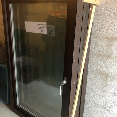 Svarta branddörrar med karm, isolerad i mitten. Har gångjärn och plats för låscylinder och handtag.