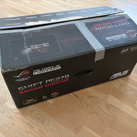 Kvitto finns, DisplayPort-kabel och strömkabel följer med.
