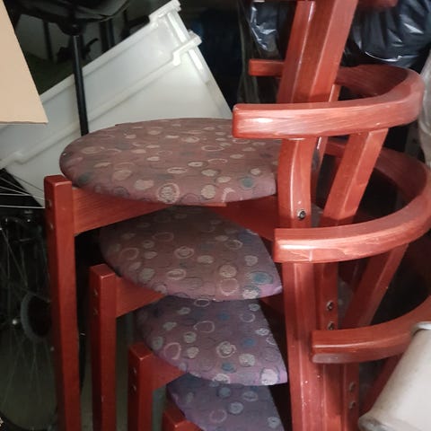 Bordet har ett märke på ovansidan som man ser på bilden, går att fixa till. Stolarna i bra skick