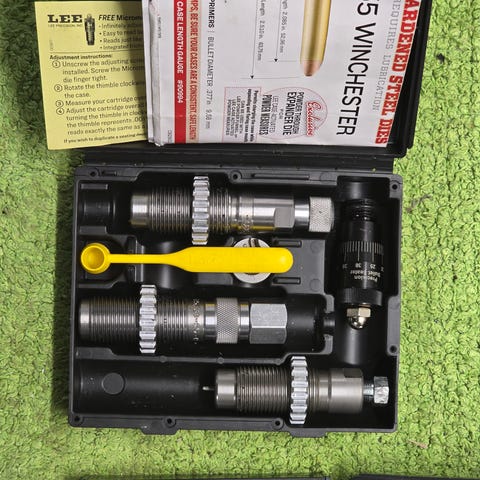 Detta är en Sinclair International NT-1000 Deluxe Neck Turning Kit, ett verktygssats för handladdning av ammunition.