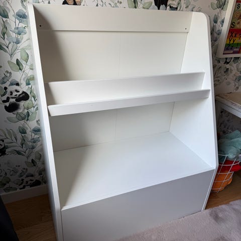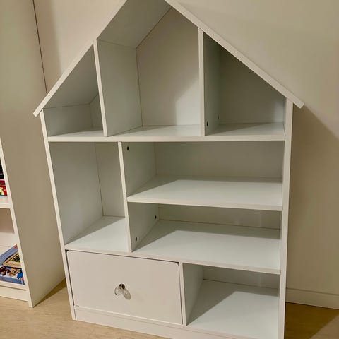 barnförvaring med lådor och bokhylla