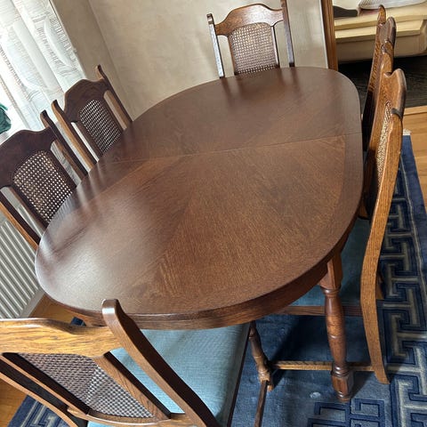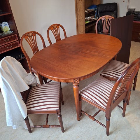 Elegant och tidlös matgrupp i gustaviansk stil – ett riktigt blickfång som ger ditt hem en varm och klassisk känsla.