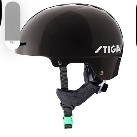Jofa 715 LS hjälm i stl M, svart med justerbart spänne under hakan. Ventilationshål och reflexdetalj bak på hjälmen.