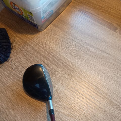 Titleist 907D2 driver med 10,5° loft och grafitskaft, grepp från Golf Pride. Medföljer matchande skydd till klubbhuvudet och skaftet har tydliga markeringar för specifikationer. Stiffskaft vänster klubba