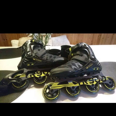 Inlines från K2, stl 41,5 , svart/gul med vita detaljer. Spänns med snörning, kardborreband och spänne och har fyra hjul med broms bak. Köpte dessa nya på Intersport men det var inte min grej. Använda en till två ggr ett par minuter. Nypris 2500kr