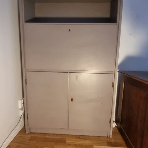 Skrivbordet från Mavis och Falsterbo-serien är den perfekta möbeln om man vill skapa en arbetsstation hemma utan att ta upp för mycket utrymme i rummet. Det här är ett skrivbord och skåp i ett, tack vare den nedfällbara skivan och de två skåpluckorna undertill. Skrivbordet är försett med kabelgenomföring, en hållare för laptop/tangentbord samt ett mindre utrymme för en minitower (dator) i underskåpet.